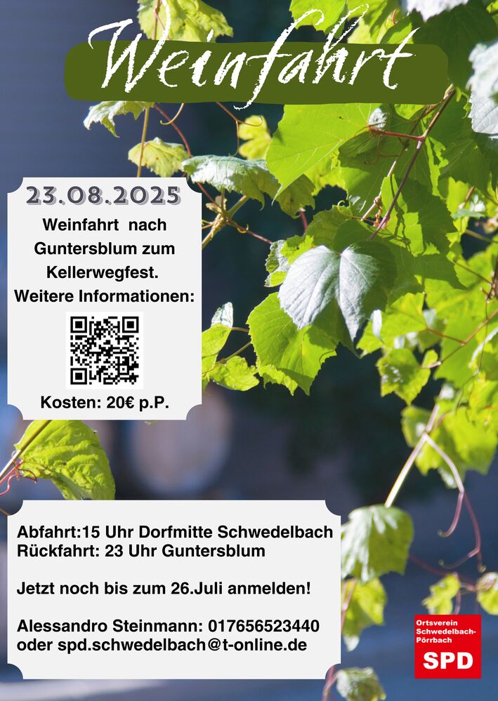 Auch in diesem Jahr wollen wir wieder gemeinsam zu einem unserer schönen Weinfeste fahren. Dieses Mal geht es zum Kellerweg-Fest nach Guntersblum.